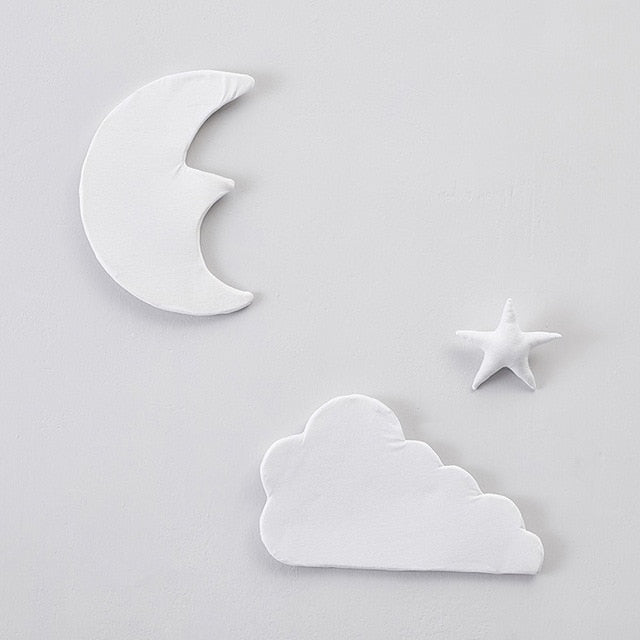 3pcs/set Moon Star Wall Decor INS Nordic Style Cotton Cloud Ornaments Kids Room Decorations Wall Stickers photography props
